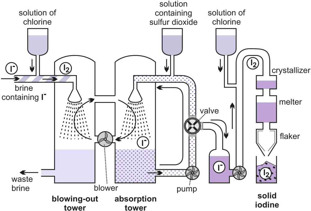 We harvest most of our iodine from natural gas fields in Chile and Japan using one of two methods. The blowing out method and the ion exchange method: