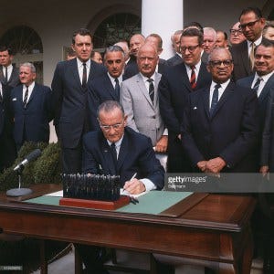 President Lyndon Johnson signs the civil rights act into law.jpg (Getty images)