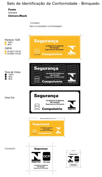 - Todos os brinquedos comercializados no Brasil devem cumprir os requisitos, as exigências essenciais de segurança, advertências e indicações de precauções com o uso estabelecido no Regulamento Técnico de Qualidade (RTQ).