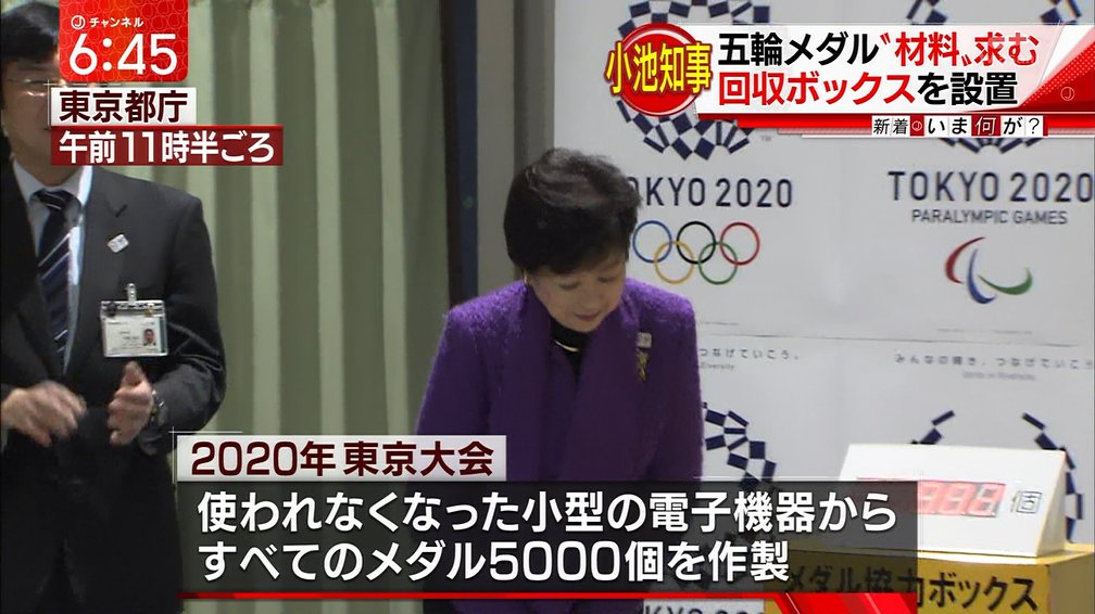 而名為「都市鉱山からつくる!みんなのメダルプロジェクト」(大家來用都市礦山製作獎牌)的特別企劃,就在這樣氛圍下醞釀展開,雖然正式執行的日期訂在4/1,但首部曲,已於上週四(2/16)於東京都廳舉行記者會試辦開跑,當日由東京都知事小池百合子,開始這樣的行動,將手機丟入回收箱,啟動共同打造獎牌的行動任務,而未來將在全國約2,400店分店的NTT domoco以及全国各縣市自治體設置回收箱,藉以回收小型家電產品。